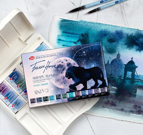 Las acuarelas White Nights son reconocidas mundialmente por la intensidad de sus colores, alta resistencia a la luz, magnífica fluidez y facilidad de mezcla. Además son las acuarelas profesionales con la mejor relación calidad precio del mercado.