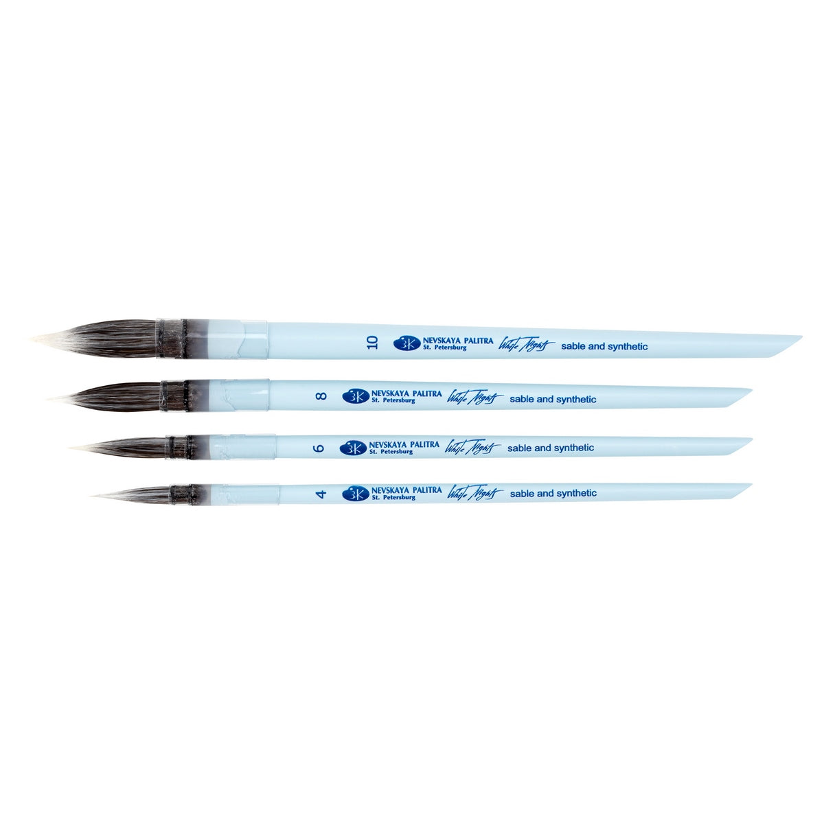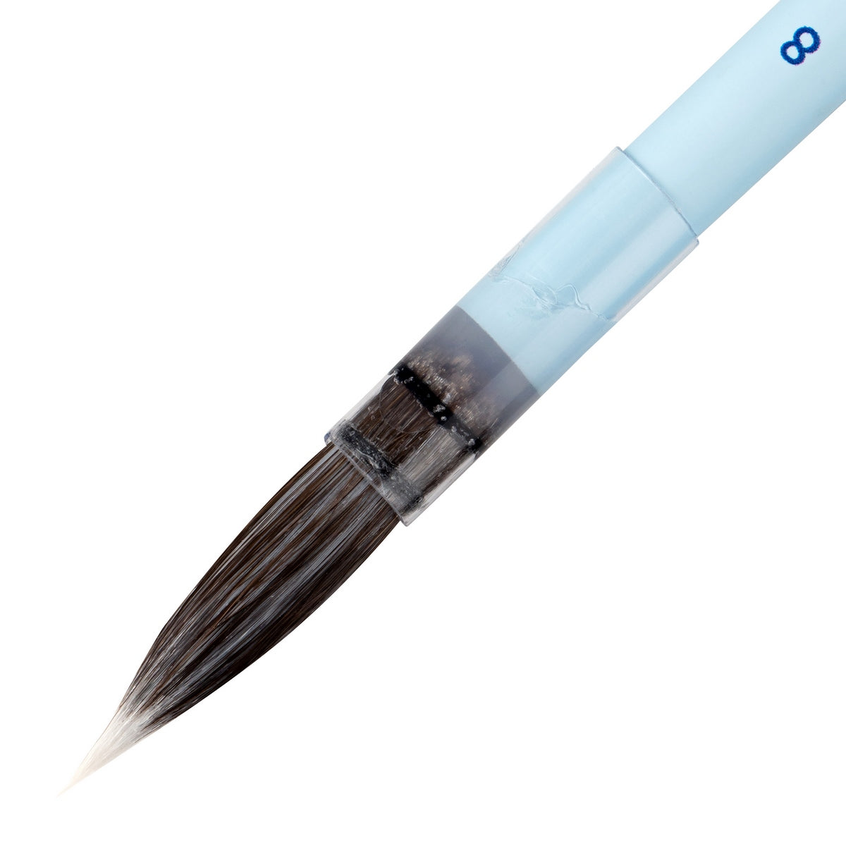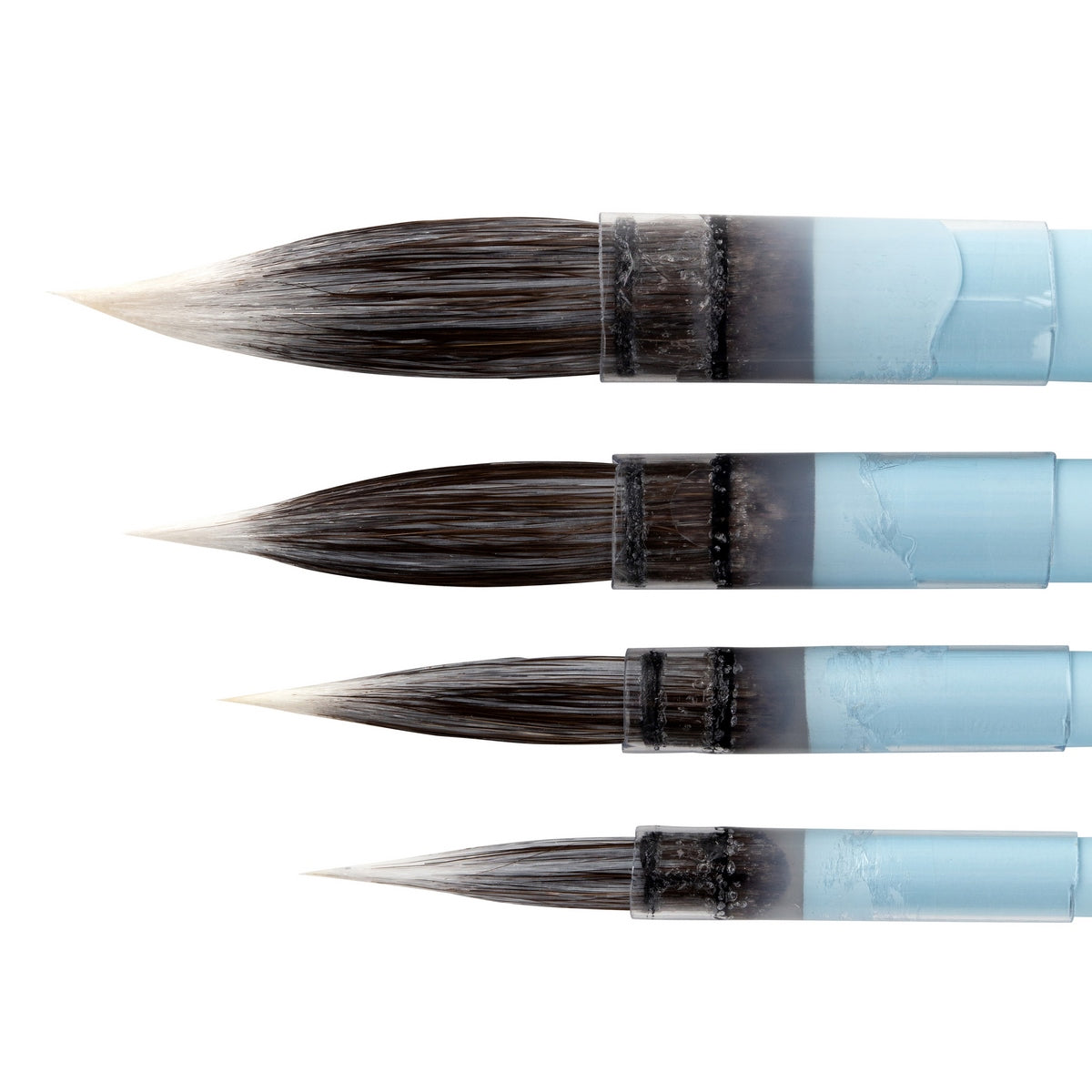Con su característico mango azul claro, punta redonda en dos tonos y el extremo del mango biselado -para usarlo en efectos de raspado y otras técnicas- estos pinceles poseen un aspecto y cualidades únicas 🖌️